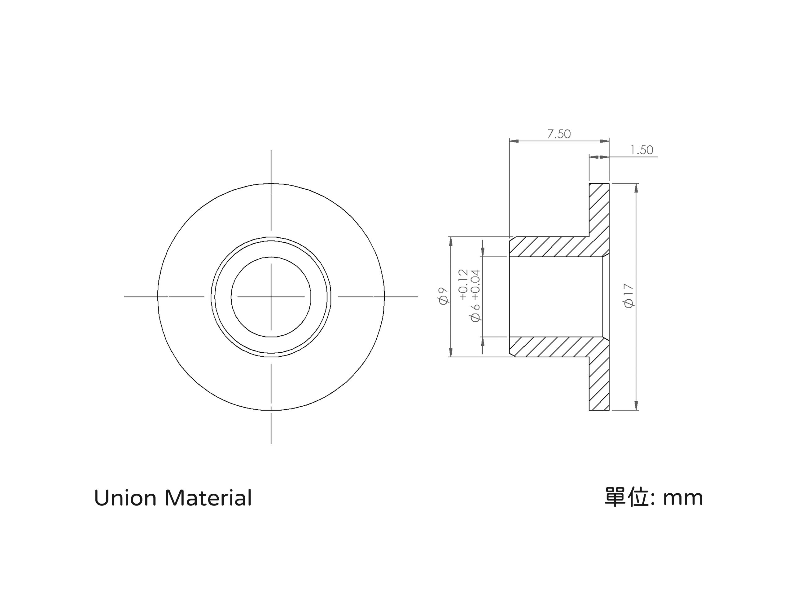 孔之尺寸為Ø9.00mm。公差,建議為+0.00到+0.02 mm。