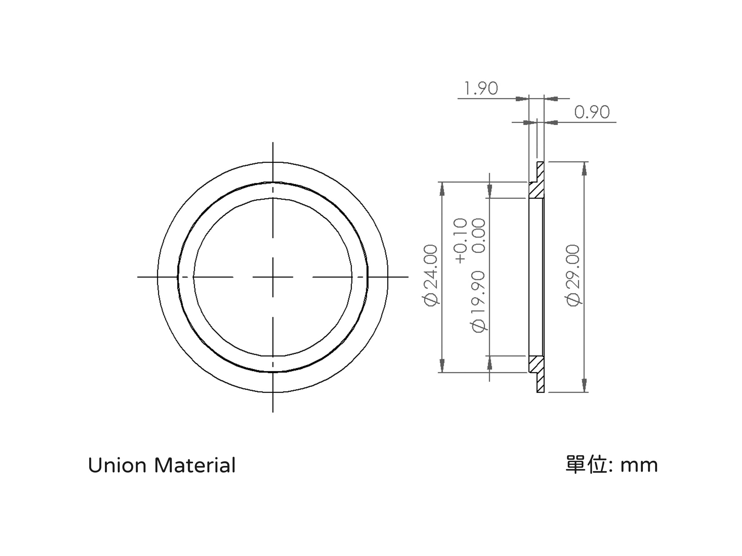 | 19.90 mm | +0.10 mm +0.00 mm | 24.00 mm | 1.90 mm | 29.00 mm | 0.90 mm |